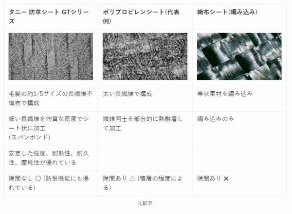 ●優れた遮光性:光の透過がほとんど無く、光合成を阻止し雑草を生育させません。