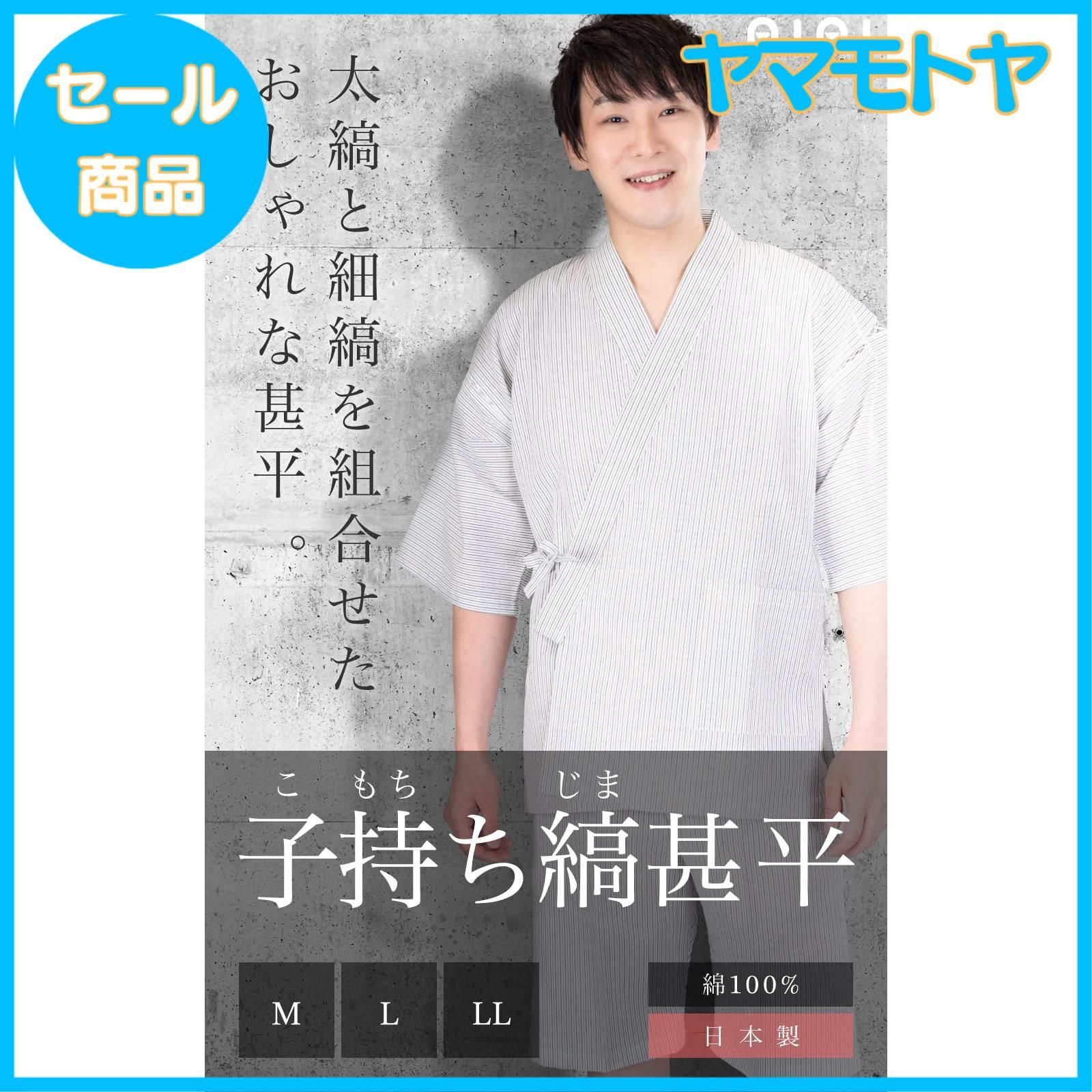 [あい藍] クールな子持ち縞 メンズ洗えるしじら織甚平 日本製 綿100%