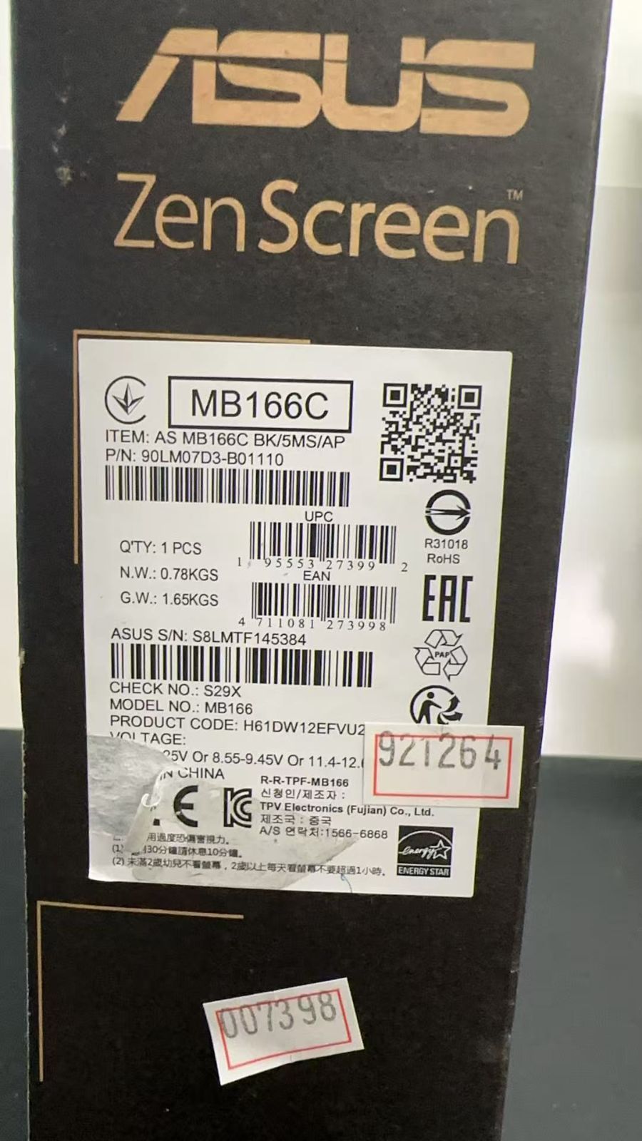 ASUS ZenScreen MB 166 C ポータブルUSBモニター 921264