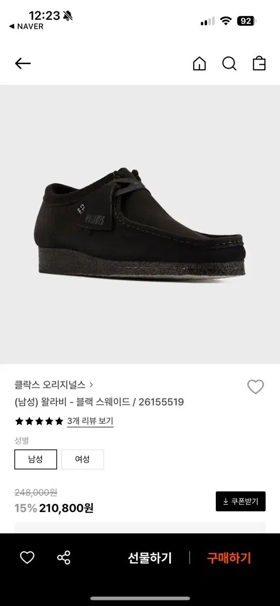 クラークスワラビーの色は黒です。デザインもOKなので、どんな服装にも合います。
