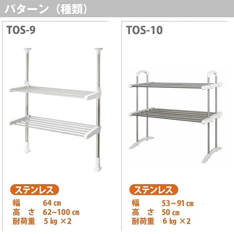 商品名:HEIAN SHINDO 突っ張りステンレス2段棚 TOS-9 平安伸銅工業