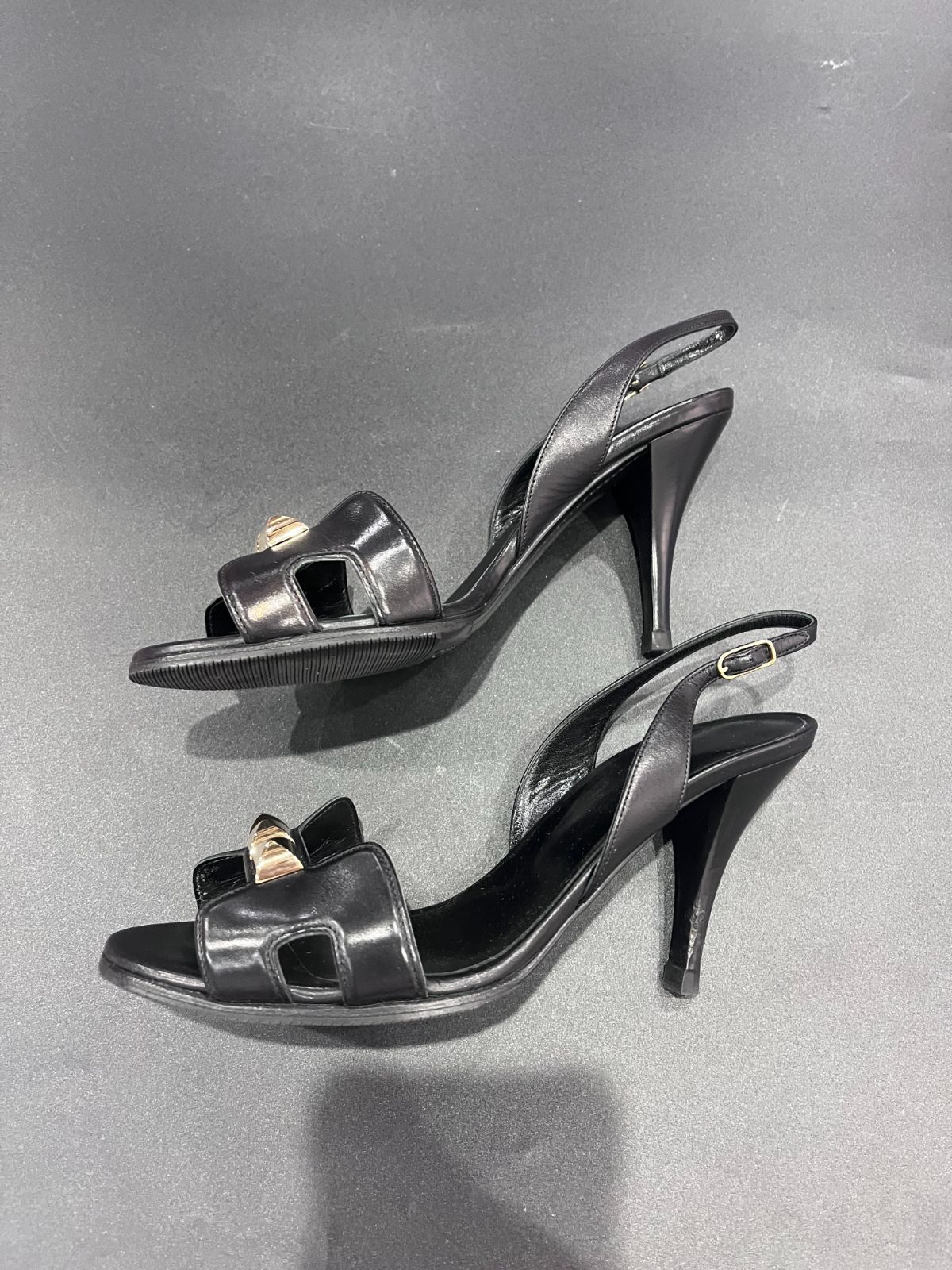 HERMES レザー スタッズ 黒 サンダル