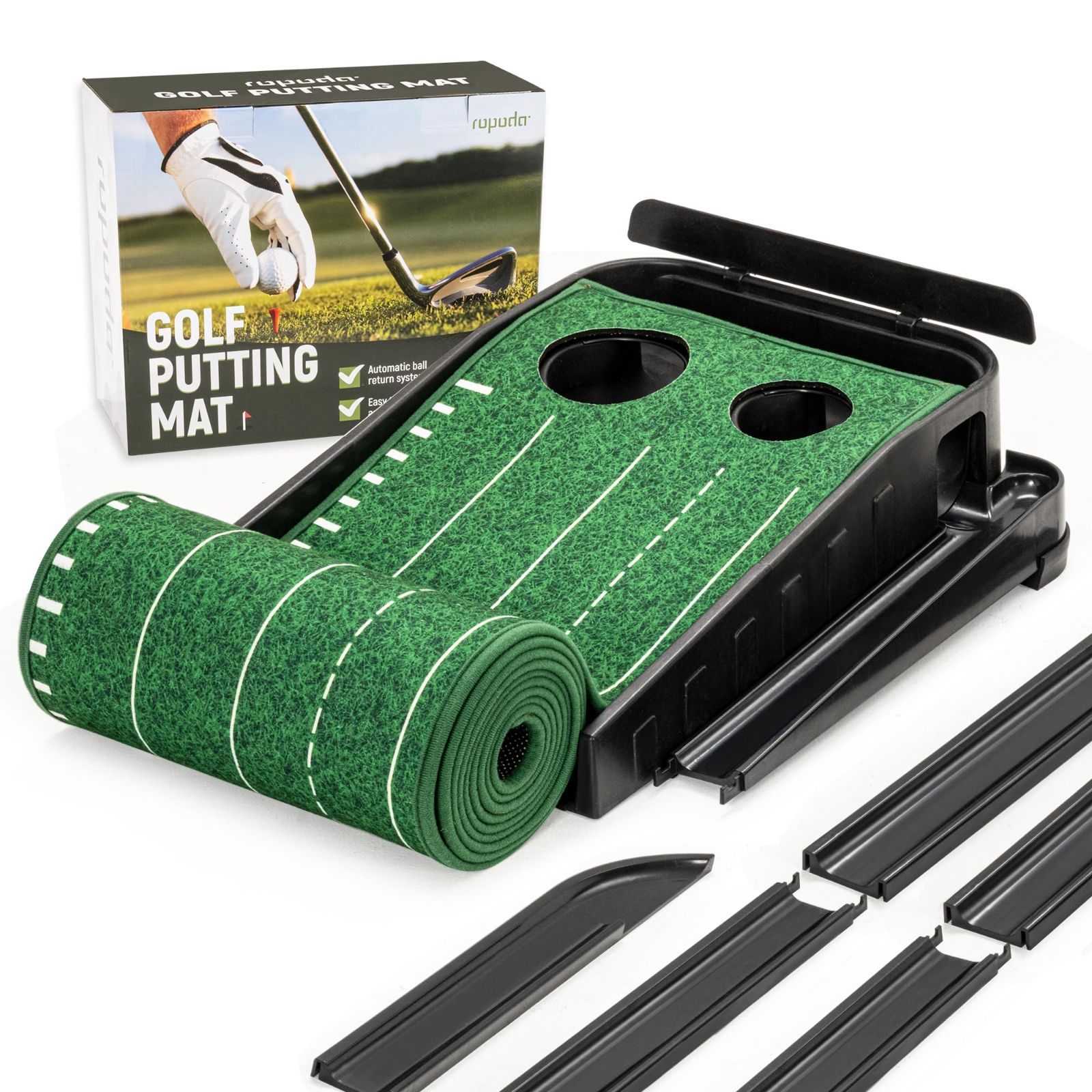 MaterialType:クリスタルベルベット ropoda ゴルフパターマット 自動 返球機能付き パター練習マット 3m 室内 屋外 屋内 静音 アプローチ マット ゴルフ パターマット パター 練習 練習器具