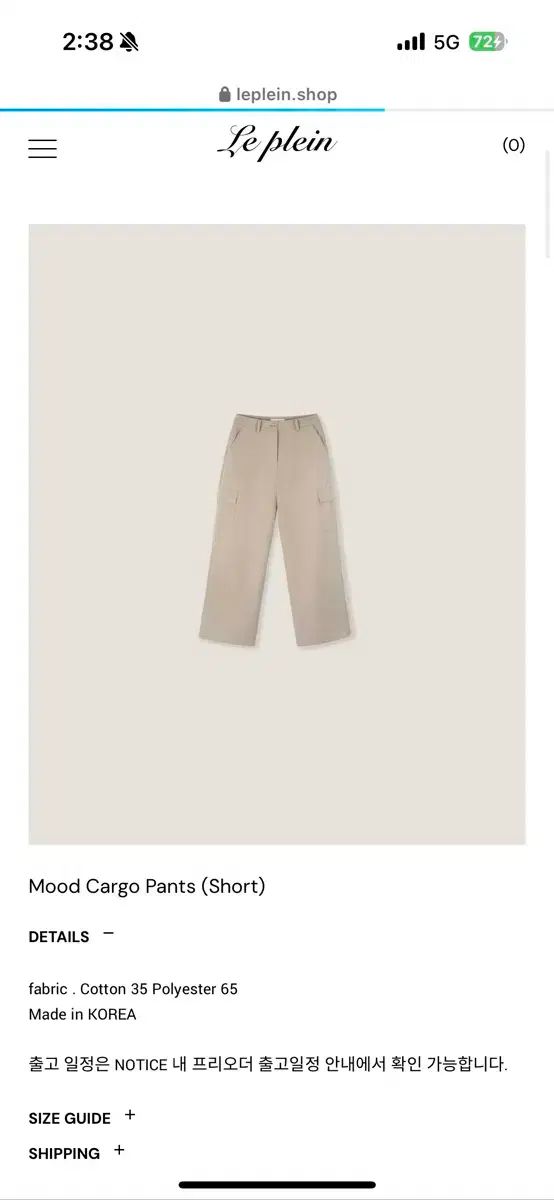 Le Plein カーゴ ショート M