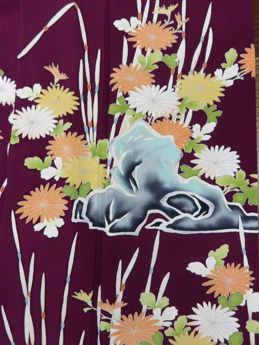 P 40721 手描き友禅 振袖 単衣 bk