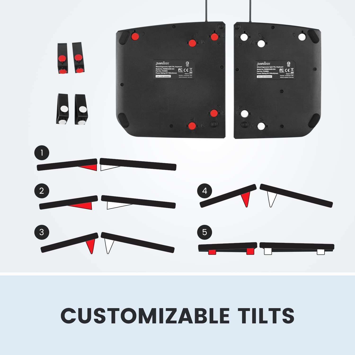 調整可能なタイピング角度 - キーボードの下部の傾斜角度は調整可能で、多くのカスタマイズされた位置で、ユーザーは自分の好みに基づいて最適な姿勢を選択できます。