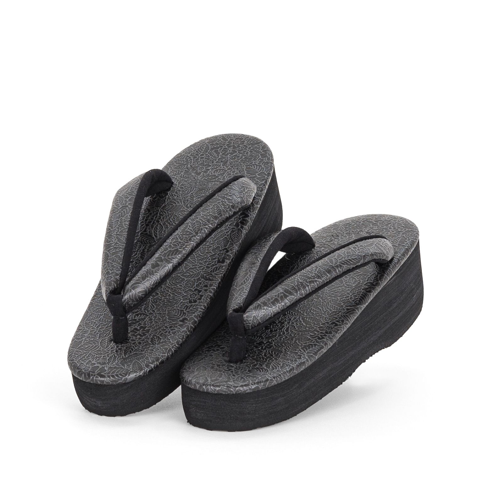 小さな花や葉っぱの柄を緻密に配したカフェ草履です。
