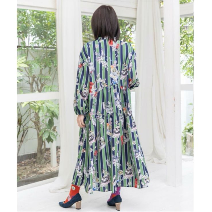ティアード部分で切り替わる柄がアクセントになって、微妙な柄のズレがまるでリメイクのような特別感を演出。