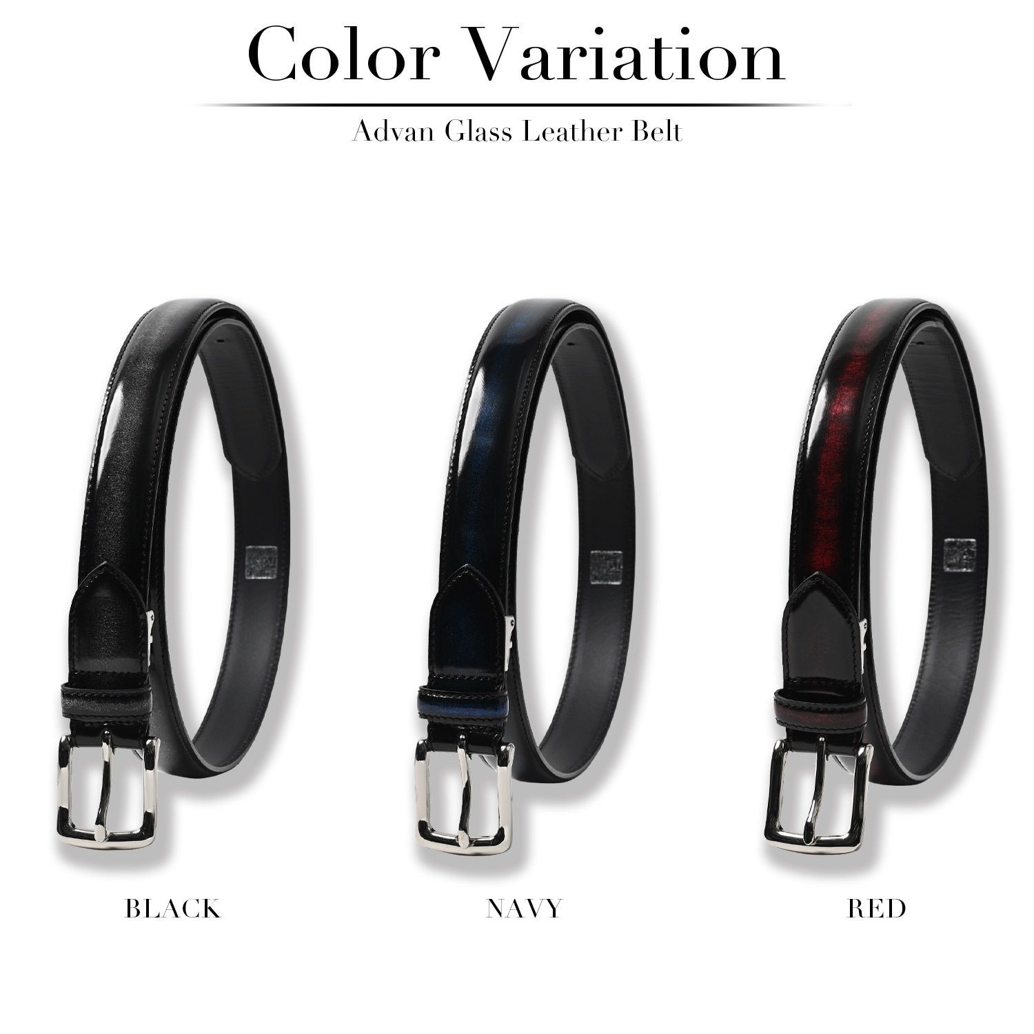 【美しさと耐久性を兼ね備えたアドバンガラスレザーを使用した日本製ベルト】