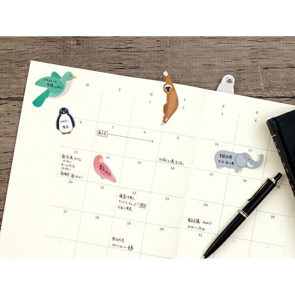詳細情報雑誌やノート、手帳などの目印に使えるアニマルデザインの付せん。