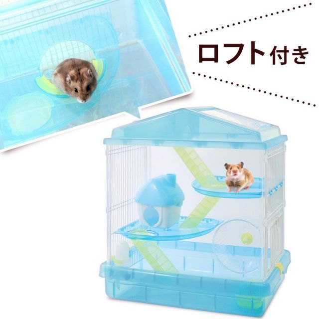 中の様子が良く見える、楽しく観察できるハムスターケージです。側面ワイヤーで通気性抜群です。広々とした3階建てでロフト空間が付いています。【セット内容】ハウス、ハシゴ、給水ボトル、まわし車、食器