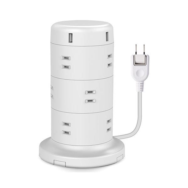 USBポートを備えたタワー型電源タップ。