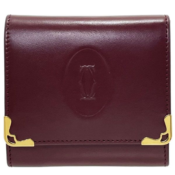 カルティエ コインケース マストライン コインパース カーフ レザー 革 ボルドー ワインレッド えんじ Cartier 2 C スクエア 小銭入れ ブランド小物 き