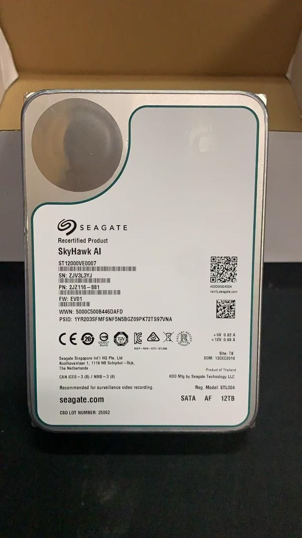 【整備済み品】 シーゲイト SkyHawk AI 12TB hdd内蔵,3.5インチ 監視用ハードディスク 7200rpm SATA 6Gb/s 256MB 24時間稼動 NAS ネットワーク 監視カメラ ビデオレコーダ
