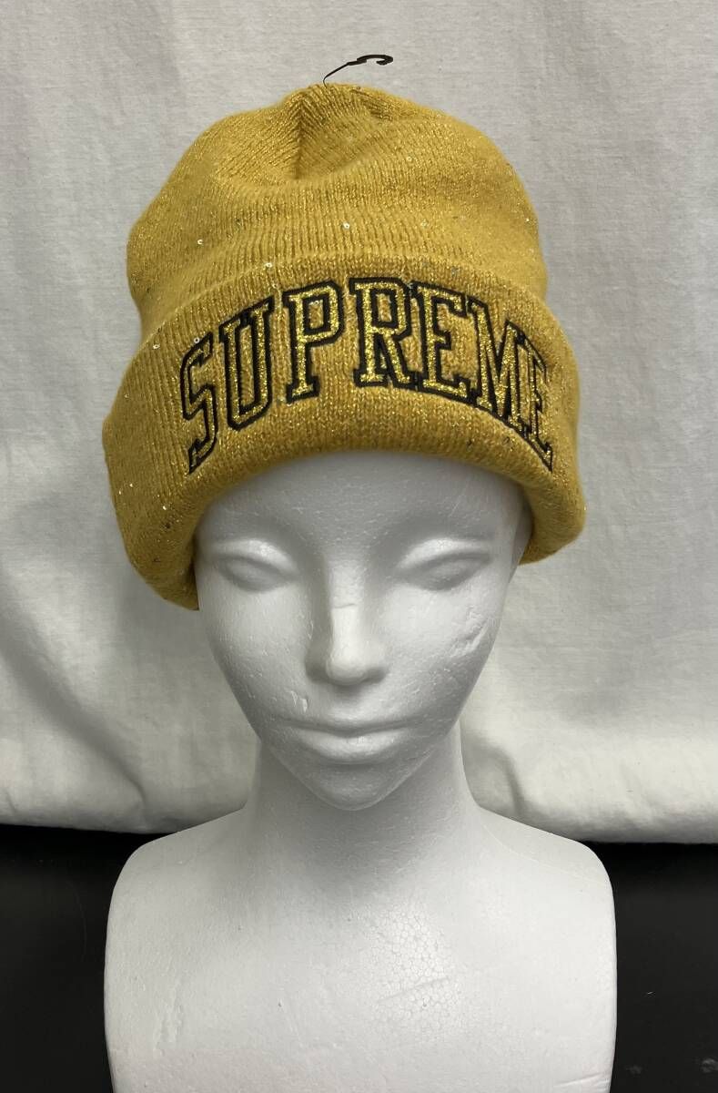 タグ付き Supreme NewEra Metallic Arc Beanie GOLD