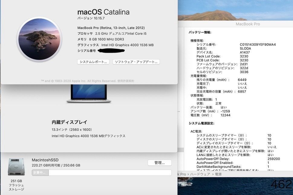 [新品バッテリー]Apple MacBook Pro 13inch 2012/Core i5 2.5GHz/8GB/SSD256GB/Office 2021/462