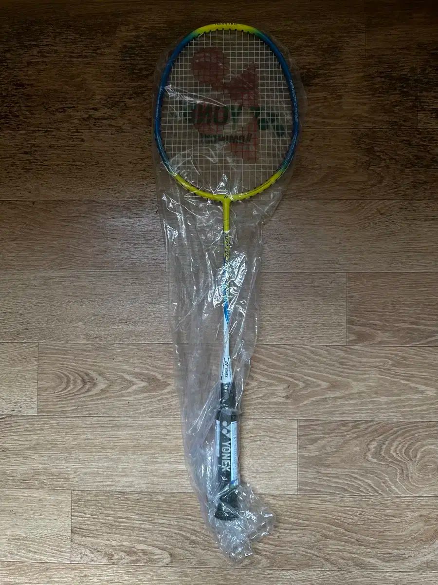 これはヨネックスナノフレア100バドミントンラケットです。ビニールは破れていますので、まだ新品ままです。