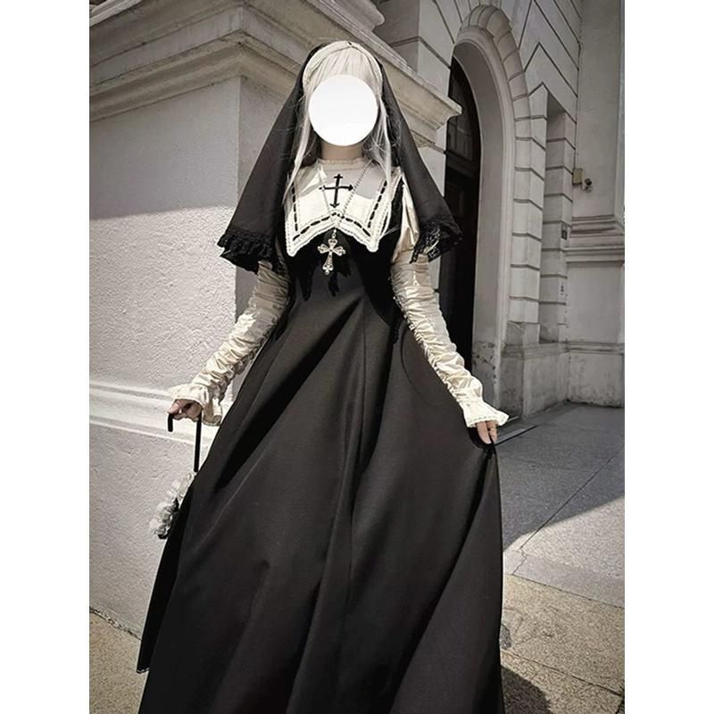 ワンピース ロリータ シスター ミモレ丈 レディース ゴスロリ ハイウエスト Aライン 暗黒風 クラロリ ロリィタファッション 長袖 フリル