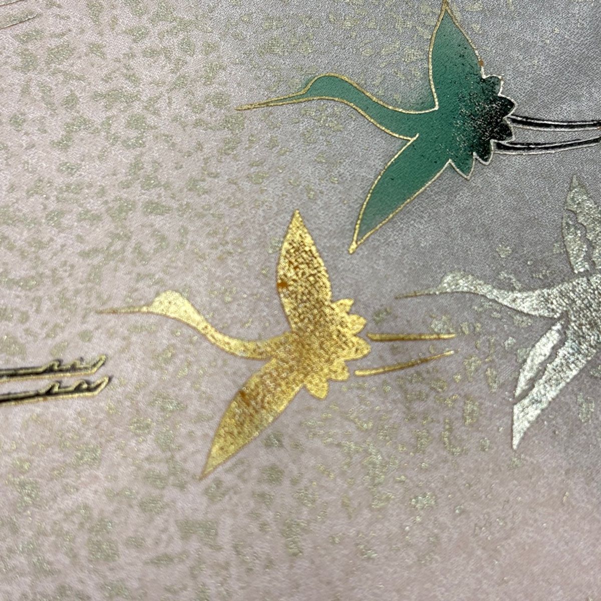 付下げ 身丈156 cm 裄丈64 M 袷 鶴 松 螺鈿 金銀彩 灰色 正絹 秀品