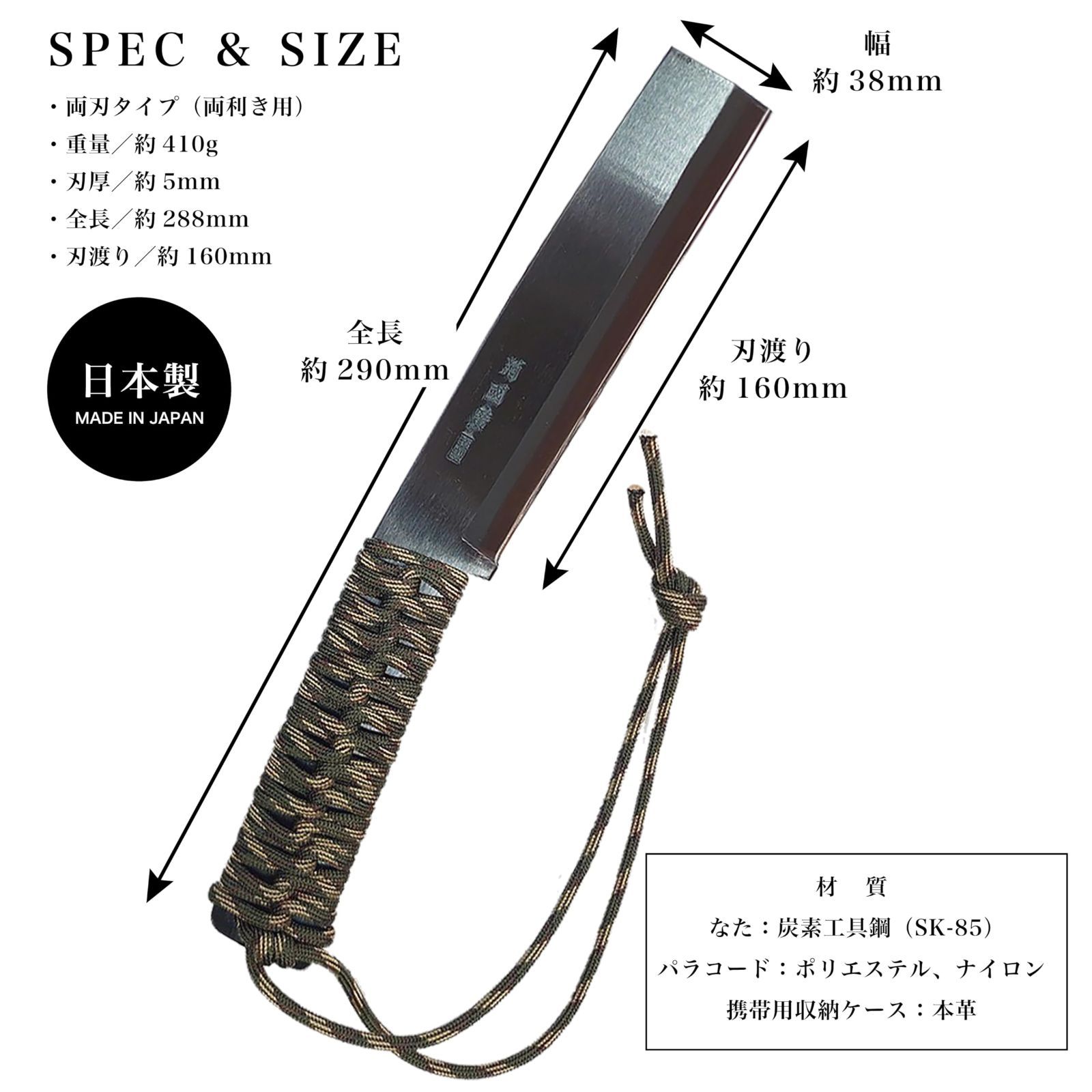 全長 約290mm 刀身:約160mm 刃厚:5mm 重量:約410g