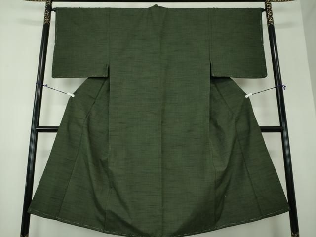 平和屋着物●男性 紬 深緑色 正絹 ♥ ps