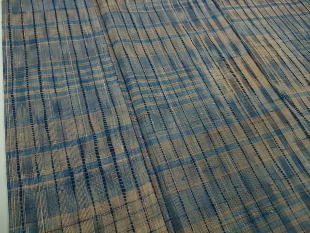 平和屋着物 上 生紬 藍 格子 kh 5