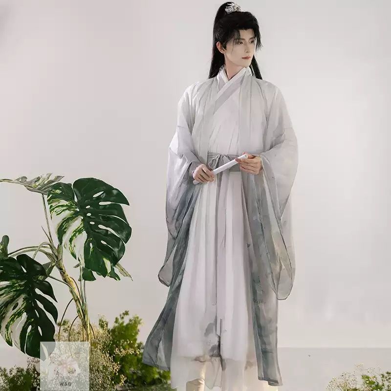水墨染め大袖衫 ユニセックス 仙侠風 交領襦裙 レトロ フォーマル イベント 大人 水墨が紡ぐ仙侠の意境 大袖が舞う浪漫の古風装束