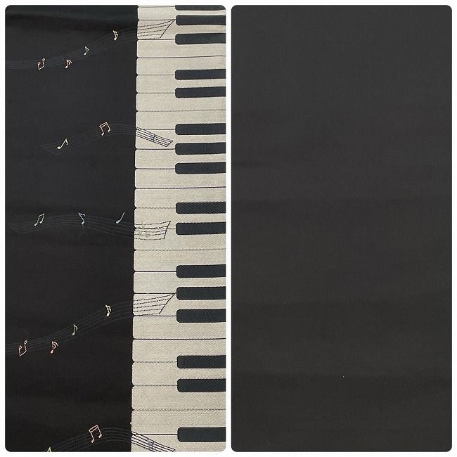 黒地にピアノと音符の可愛いデザインが入った洒落袋帯。