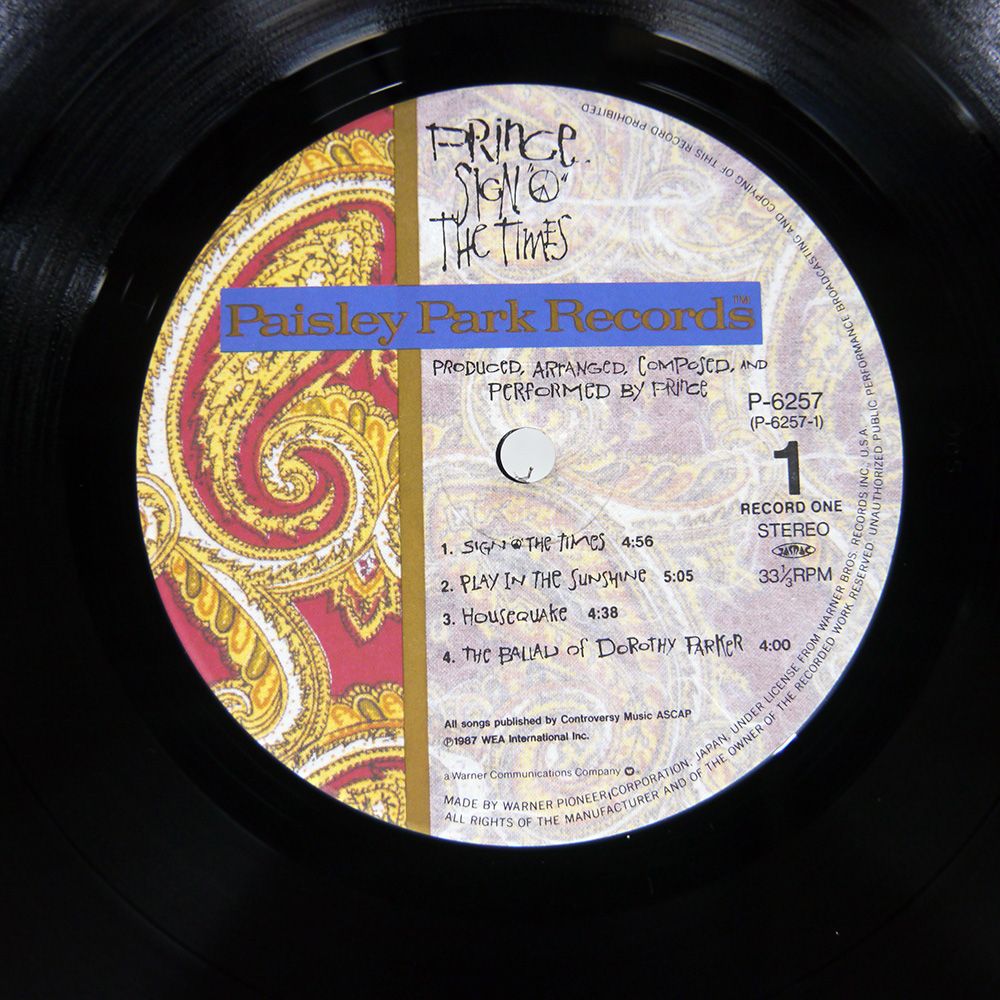 盤 PRINCE SIGN O THE TIMES PAISLEY PARK P 6257 LP