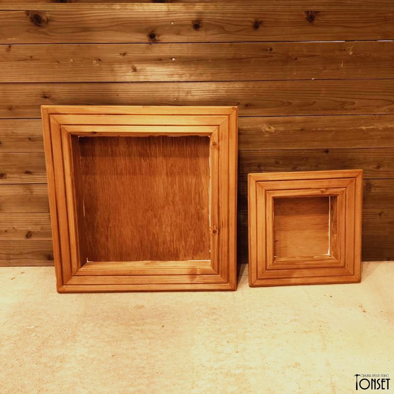 一般市販品では額縁部分が細くて、出来上がった時のフレーム感が薄くなってしまうのを改善し、思い切って太い額縁にしました。