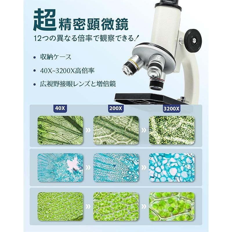 商品名:顕微鏡 40X~3200X 小学生 子供 顕微鏡セット 中学生 高校生 【日本語説明書付き】夏休み 自由研究 標本付き 操作簡単 小中学校成人初心者学習 小学生プレゼント (XWJ-SJHU1)