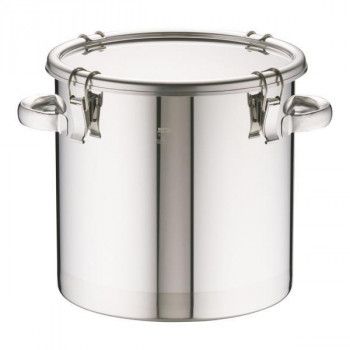 本体とフタの締め付けをキャッチクリップで行う密閉式容器です。内外面バフ研磨仕上げです。シリコンゴムパッキンを使用しています。底面フラットタイプのため粉・液だまりがありません。
