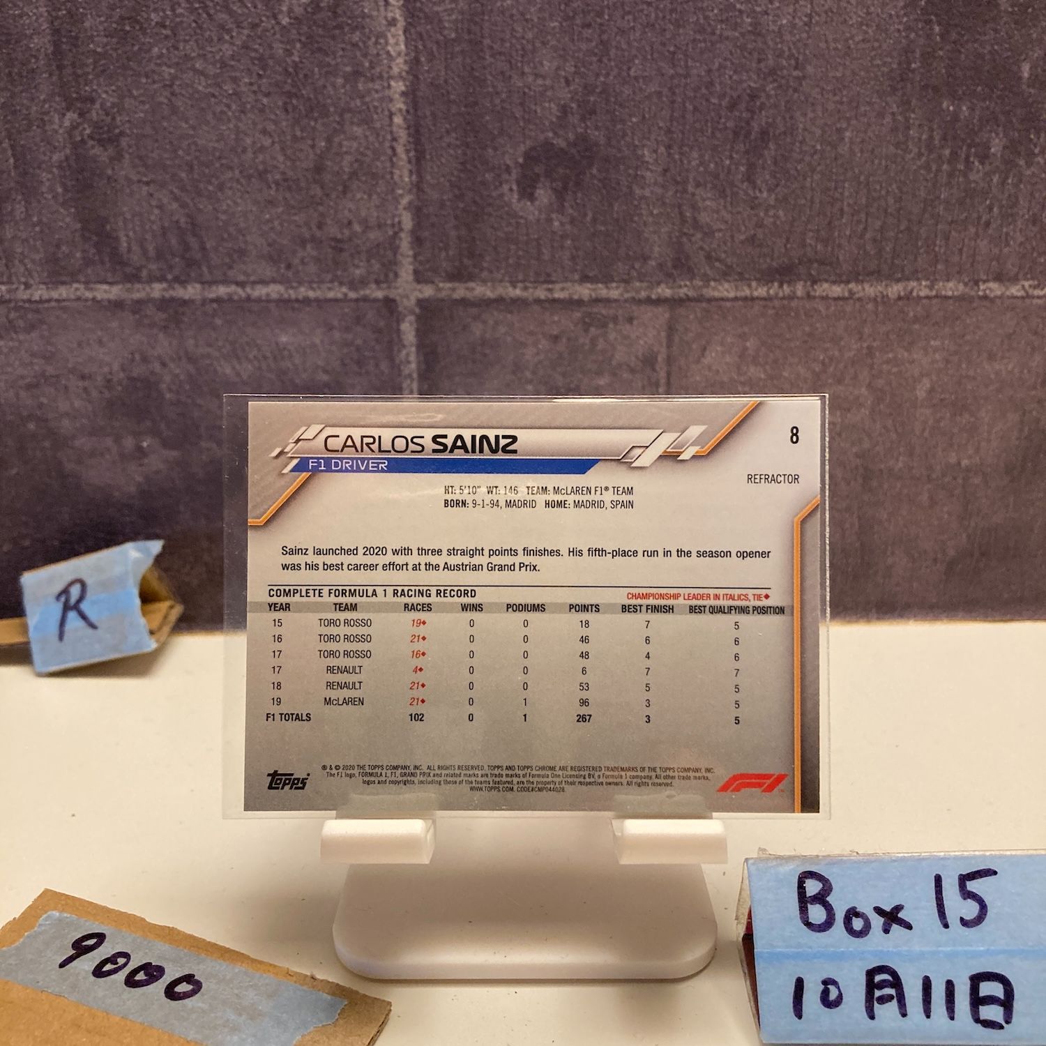 2020 Topps Chrome Carlos Sainz McLaren F1 Team Refractor