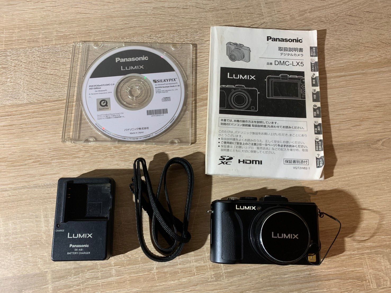説明書、ディスク、ストラップ、充電器、バッテリーあり
