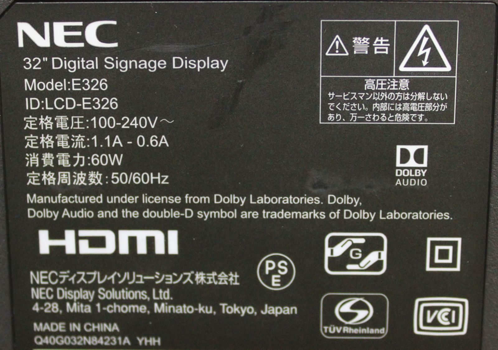 71632 NEC 32型LED液晶ディスプレイ E 326 み