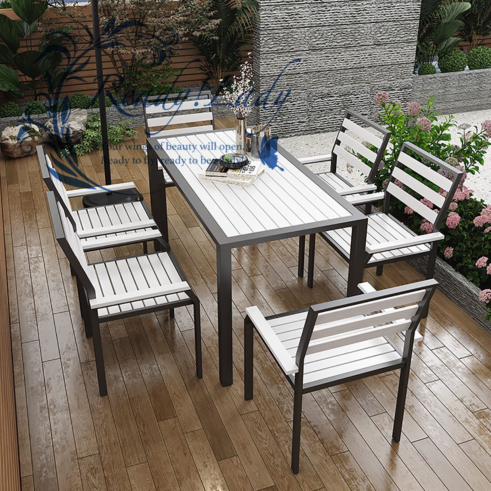 【プラスチック木材】テーブルと椅子の表面はプラスチック木材でできており、質感がはっきりしていて、硬くて耐摩耗性のある素材で、耐荷重性が高く、日焼け止めと耐雨性があり、平均耐用年数は30年に達します年。