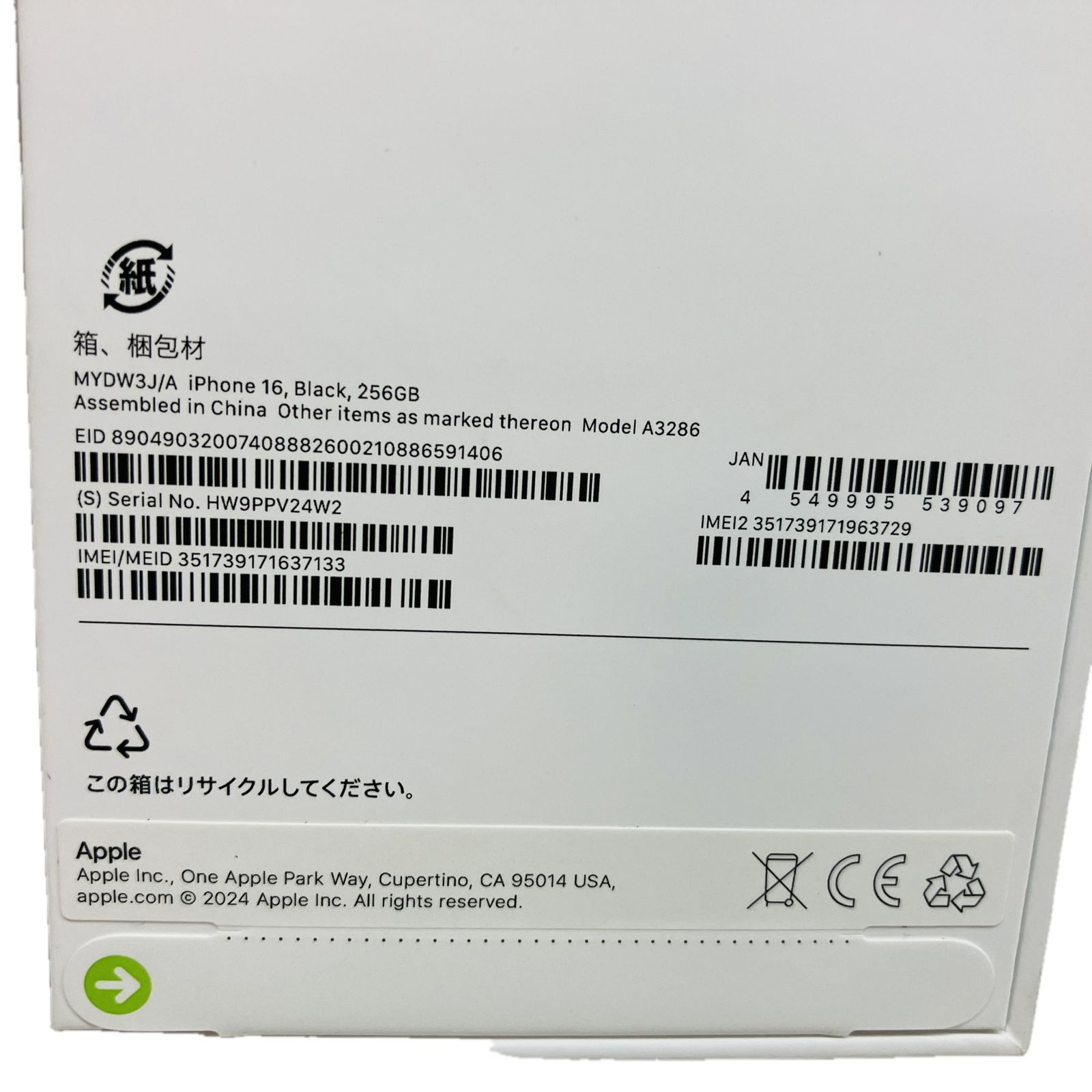Apple MYDW 3 J A iPhone 16 256 GB BLACK アップル