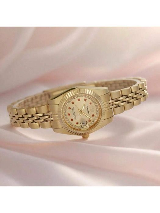 腕時計 レディース クォーツ ステンレススチール ゴールドトーンケース-バンド ビジネスファッション レッドクリスタル クォーツ腕時計 エレガントでラグジュアリー デイリーの装飾 プレゼント