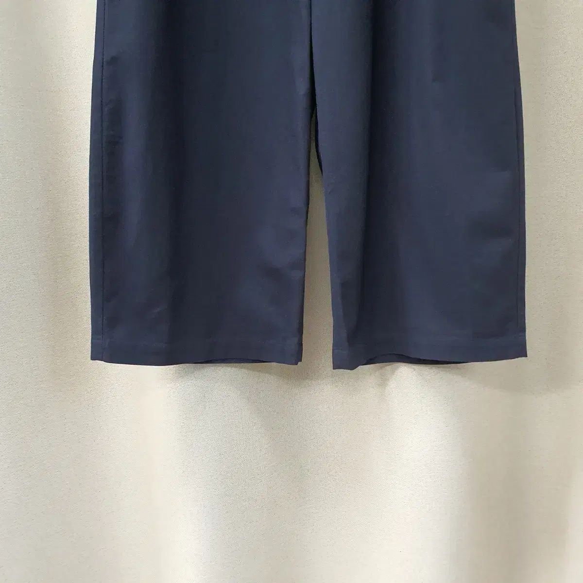 ブラックに近いダークネイビーのバンディングワイドパンツです。それほど厚くはありませんが、少し厚いので、春と秋の季節に着用することをお勧めします。