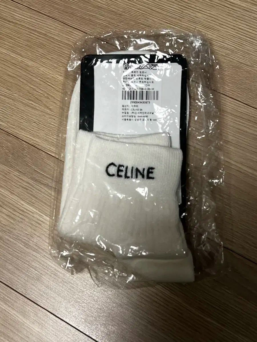 新品セリーヌソックスはMサイズです。サイズは240で、白い背景にセリーヌのロゴが埋め込まれています。