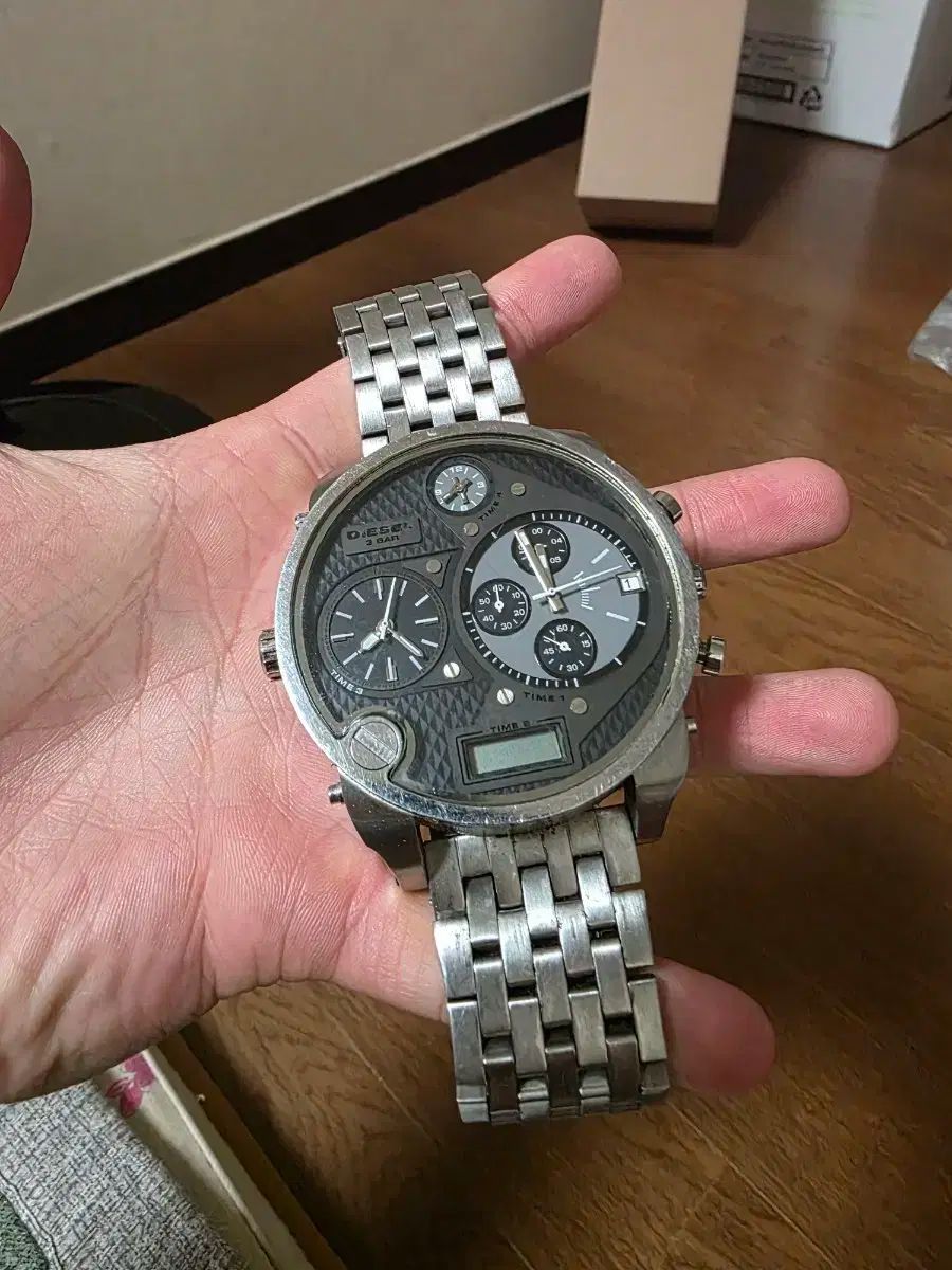 これはディーゼルDZ-7221メンズメタルウォッチです。4つのLCDスクリーンでさまざまな時間を確認できます。若干の使用感はありますが、特段の欠陥もなく正常に動作します。別途ご不明な点はありませんので、すぐに安心してお支払いください!
