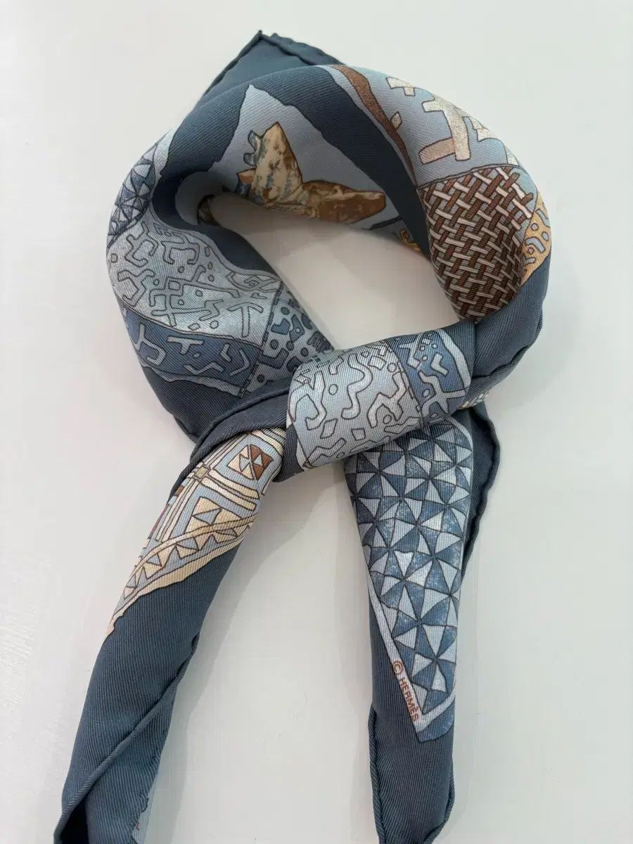このスカーフを箱に入れて保管しました。全体的に落ち着いた色なので、どんな服装にも合います