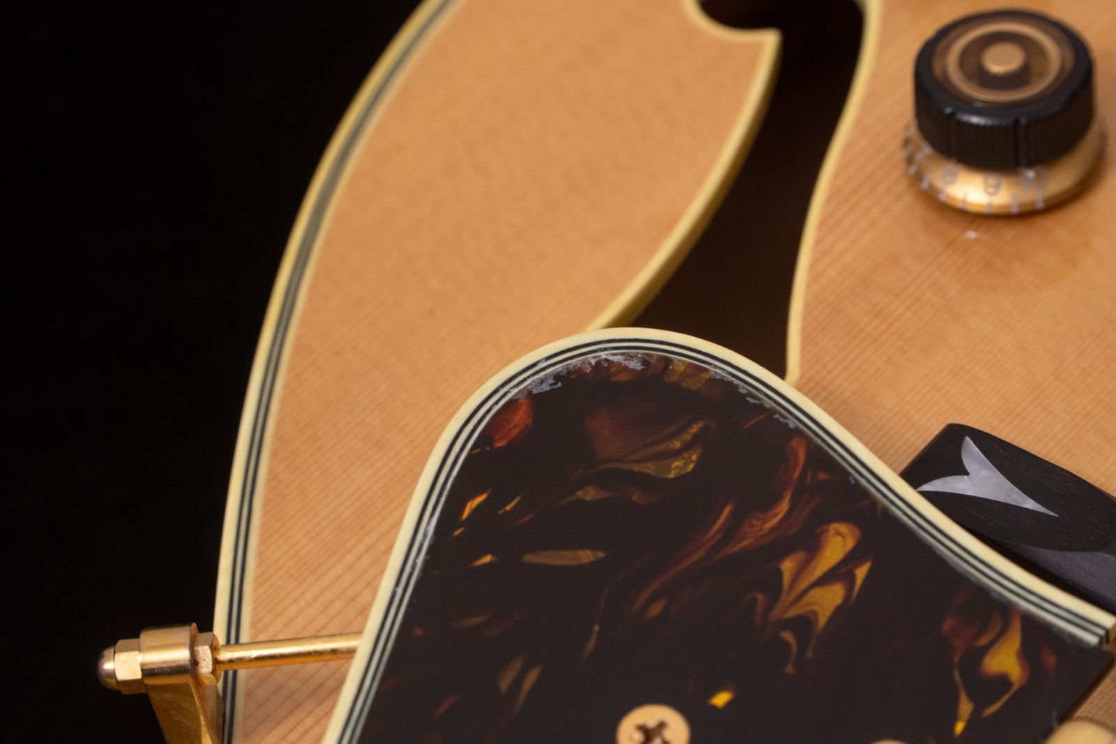 ナチュラルカラーで統一されたボディにゴールドのハードウェアやオリジナルのインレイ等、非常にゴージャスなルックスを持ちます。