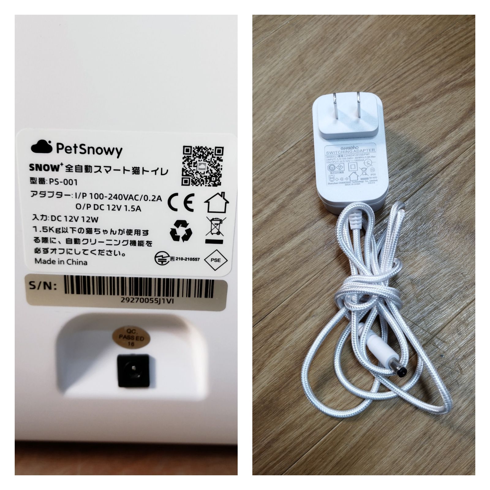 入力: 100-240VAC 50/60HZ 出力DC 12V/1.5A