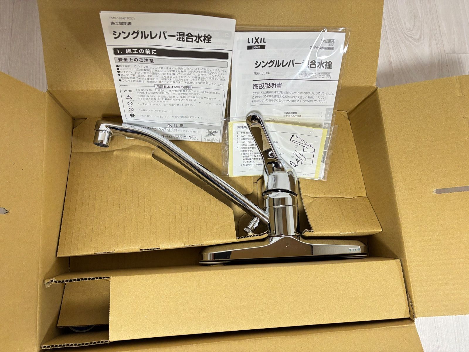 こちらは、新品未使用品のシングルレバー混合水栓でございます。