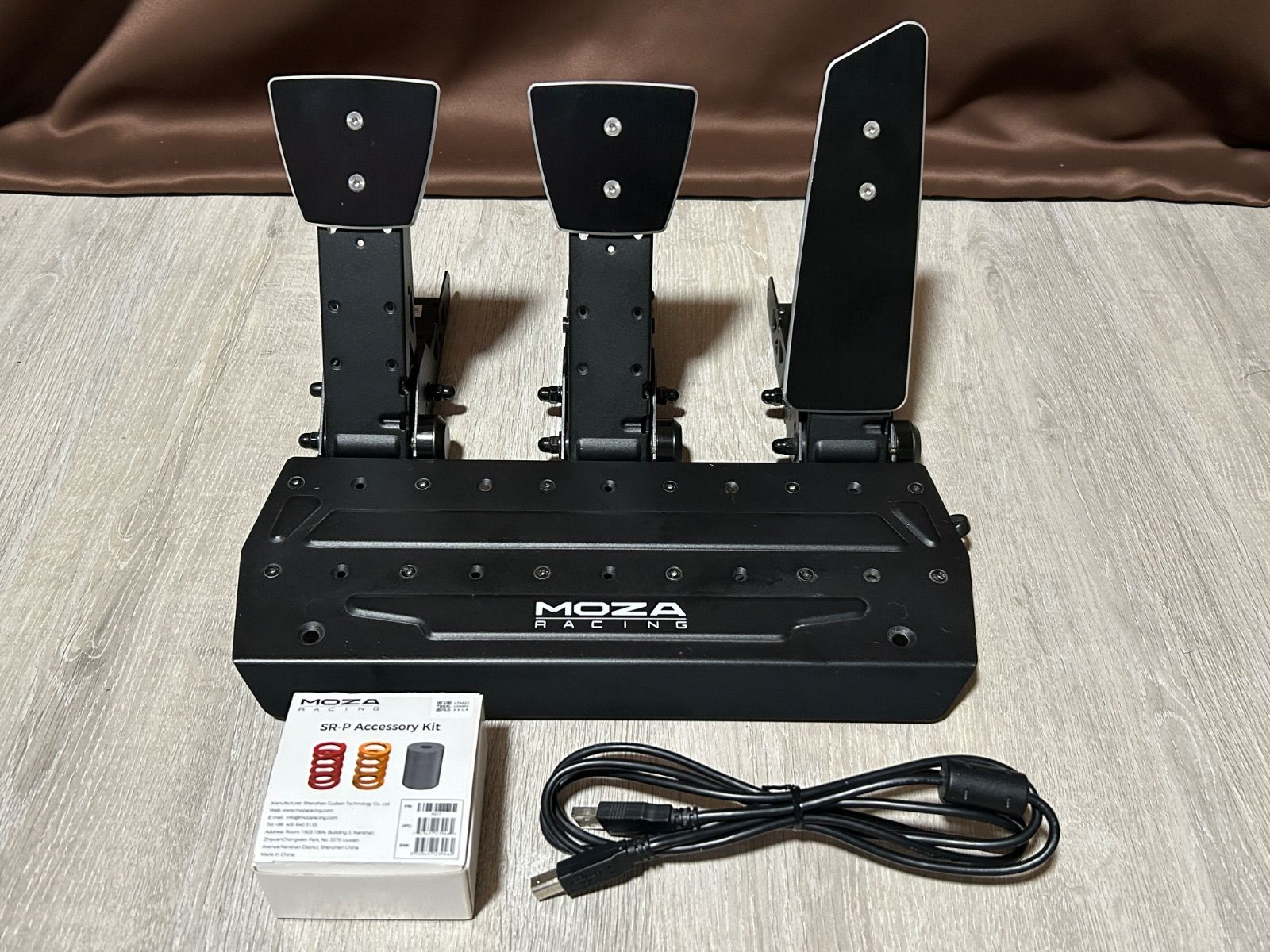 MOZA製、SR-Pペダル(クラッチ付き)とアクセサリーキットのセットです。PCにて動作確認済み。MOZA Pit Houseで確認できました。