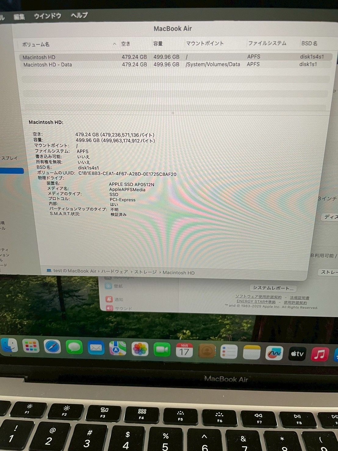 MacBook Air 2020 i 5 8 GB 512 USキー 元 No.4050