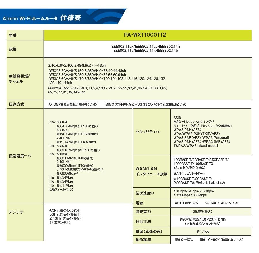 NEC Aterm Wi-Fi 6 E 11 ax 対応 ホームルータ PA-