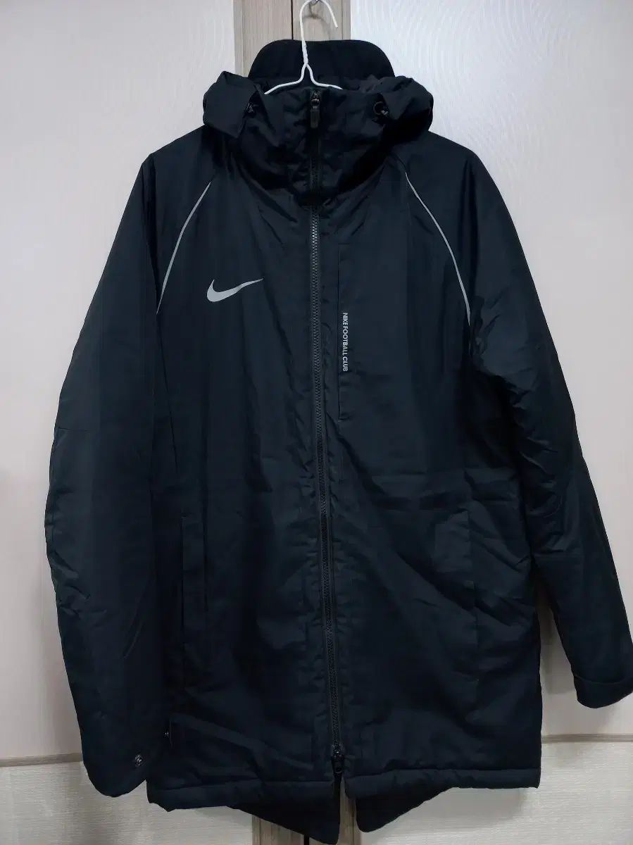 NIKE F.C. フィル ジャケット Lサイズです。無難な黒カラーで、胸元にNIKEロゴがあります。フード付きで活用度が高く、季節の変わり目に着るのに良いです。