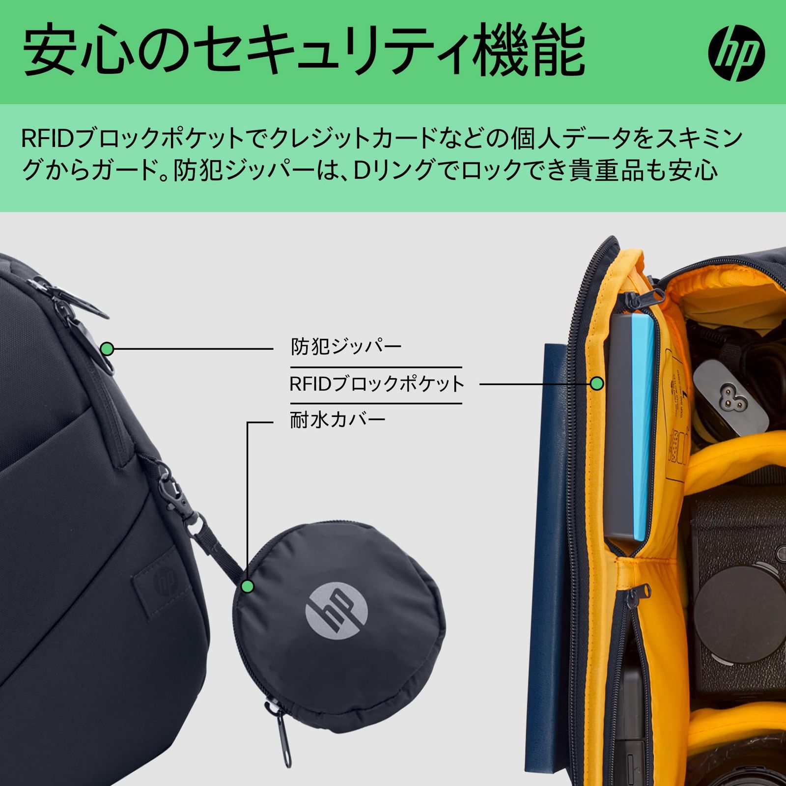 【きちんと整理、しっかりと保護】ノートパソコンや周辺機器など、それぞれの場所にしっかり収納。中の仕切りは取り外し可能で、機器のサイズや形に合わせてレイアウト調整が可能。耐水カバー付きだから雨の日でも安心。